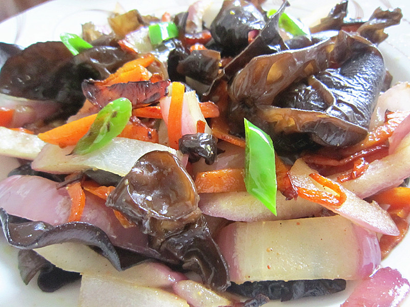 胡萝卜、洋葱、木耳一起炒是我第一次做,总是感觉可以做出美味了。在我研究的食品养生学中,足以见得着三种食物放在一起炒营养不会冲突,再放一点肉、一点辣椒味道会更好。这款小菜也正是减肥排毒养颜的好搭档,大家不妨试一下。