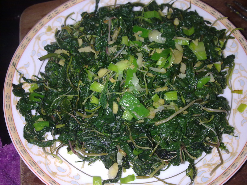 及以下步骤:不断的翻炒,让麻叶拷干,大概五分钟后 把麻叶推到一边,中间放油 油热放大蒜,生姜,炒熟后,再放盐,和麻叶一起炒两分钟 完成,还有一种做法,是放蒜头和豆酱,也是很美味的 捞起来,用凉水洗洗,用手拧干水分 把锅热热,把麻叶放到锅里 不断的翻炒,让麻叶拷干,大概五分钟后 把麻叶推到一边,中间放油 油热放大蒜,生姜,炒熟后,再放盐,和麻叶一起炒两分钟 完成,还有一种做法,是放蒜头和豆酱,也是很美味的
