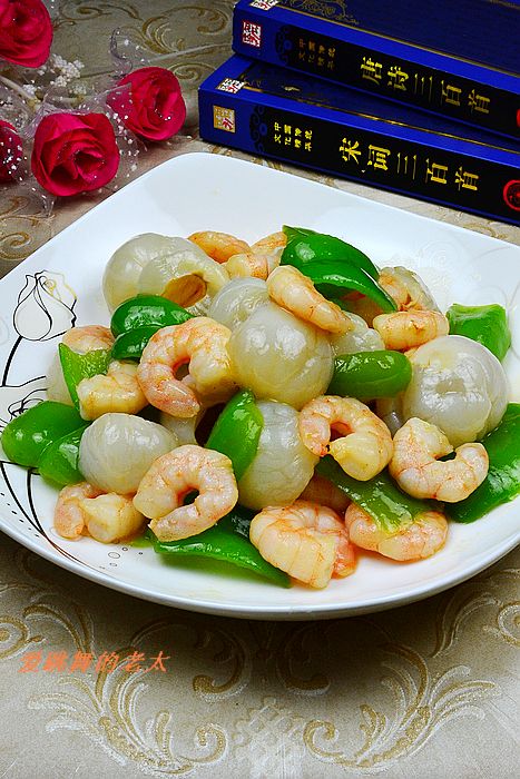 虾仁(100克) / 青椒(1个) / 荔枝(200克)