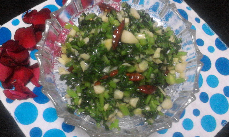 6、萝卜菜、干红辣椒、蒜