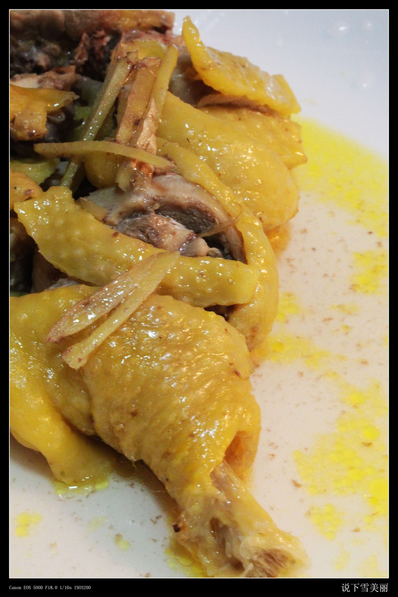 6、如果你喜欢手撕的,就撕吧,可以蘸着汁吃,如果鸡的味道比较淡,说明盐放少了,还可以把盐加在汁里,蘸着吃。我就砍了,太大了,嘿嘿,把汁淋上去一样美味哦。