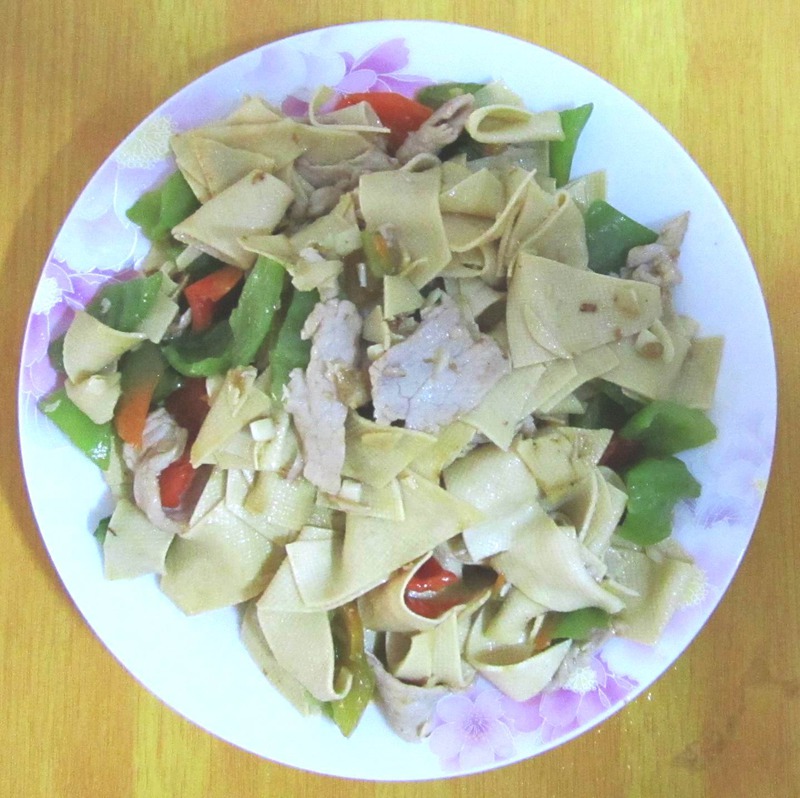 及以下步骤:最后勾芡,出锅,装盘。 先放大豆油在锅里,然后放葱、肉片翻炒至肉发白,再放入干豆腐、两勺水,炒两分钟后放入尖椒、蒜米。 最后勾芡,出锅,装盘。 先放大豆油在锅里,然后放葱、肉片翻炒至肉发白,再放入干豆腐、两勺水,炒两分钟后放入尖椒、蒜米。 最后勾芡,出锅,装盘。 先放大豆油在锅里,然后放葱、肉片翻炒至肉发白,再放入干豆腐、两勺水,炒两分钟后放入尖椒、蒜米。 最后勾芡,出锅,装盘。 干豆腐切菱形块,尖椒也切丁,猪里脊肉切薄片。肉片切好后用料酒、淀粉煨一下。 先放大豆油在锅里,然后放葱、肉片翻炒至肉发白,再放入干豆腐、两勺水,炒两分钟后放入尖椒、蒜米。 最后勾芡,出锅,装盘。