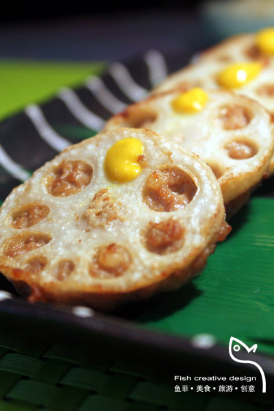 及以下步骤:猪肉糜拌入酱油、味精、姜末,嵌入藕片 藕节切成1厘米厚 猪肉糜拌入酱油、味精、姜末,嵌入藕片 藕节切成1厘米厚 猪肉糜拌入酱油、味精、姜末,嵌入藕片 藕节切成1厘米厚 猪肉糜拌入酱油、味精、姜末,嵌入藕片 藕节切成1厘米厚 猪肉糜拌入酱油、味精、姜末,嵌入藕片 挂上面粉糊,放入6层热的油锅内炸至金黄色,黄芥末佐味。
