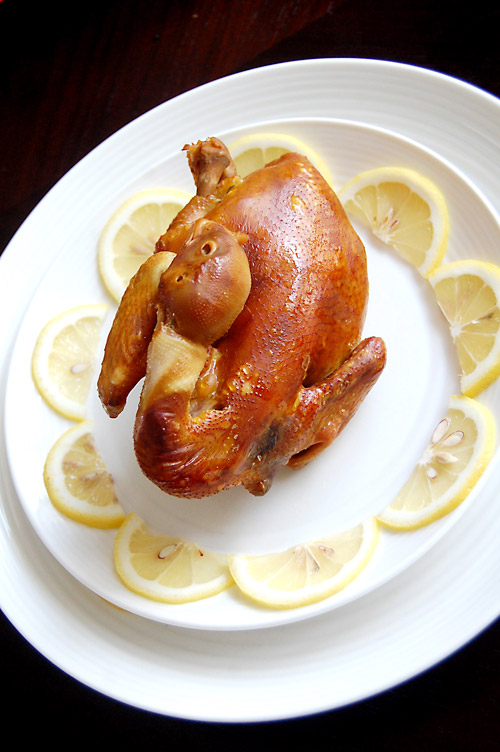 1、根据鸡的大小调节炖煮和熏制时间,尽量保持鸡的完整性。