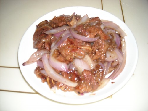1、原材料:牛仔骨扒500克、洋葱1个。、将牛仔骨扒洗净,沥干水分,用蒜泥、黑胡椒碎、香叶、生抽、生粉、料酒、洋葱丝、姜丝、糖、油、盐拌匀腌2小时以上备用。