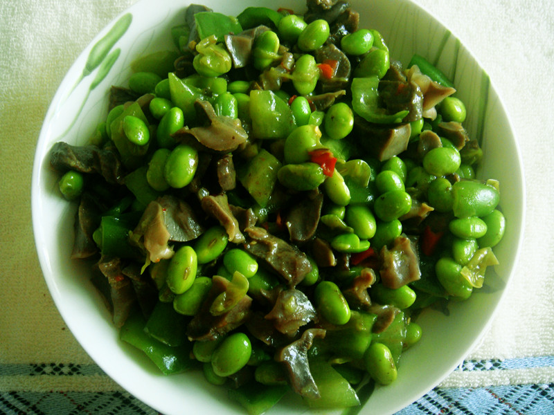 毛豆青椒炒鸭胗烹饪方法 图片大全及制作所需厨具设备是网友推荐小编整理所得,是网友的分享推荐,是饮食文化的资源共享,中华美食文化是中华文明的具体践行,美食毛豆青椒炒鸭胗烹饪制作就是在传承中华文化。