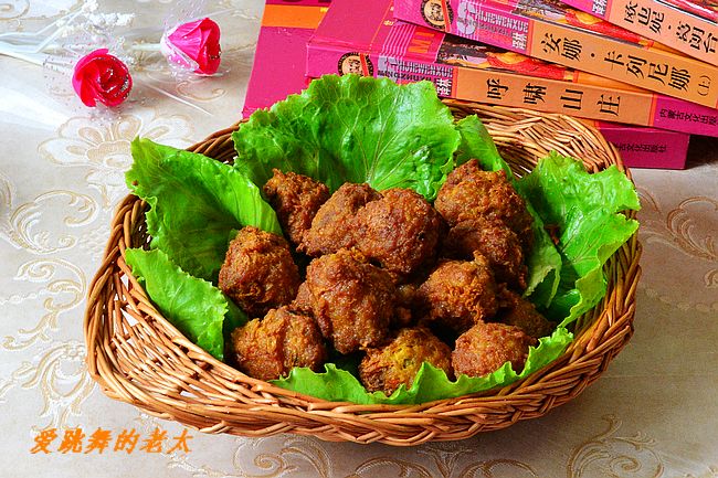 及以下步骤:中火炸成金黄色的丸子,捞出 全部再复炸一次,捞出控油。 用生菜叶垫底,装盘即可 生菜洗净,取叶子备用 把肉糜放入大碗,磕入鸡蛋,加入各种调料 往一个方向搅拌好 锅里放入400克油,7分热,左手抓满肉馅揉搓出圆形丸子,右手用调羹把丸子刮入油锅 中火炸成金黄色的丸子,捞出 全部再复炸一次,捞出控油。 用生菜叶垫底,装盘即可