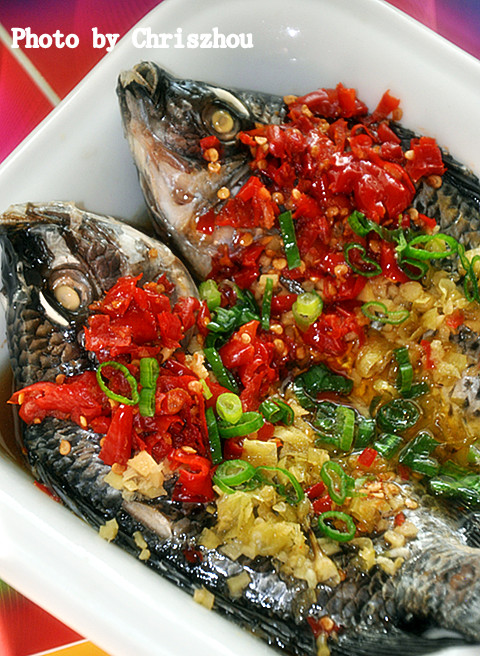 今天欣赏薄灰的美食日志,看到了她做的双椒鱼头,把我给馋的呀。突然特别怀念在上海时,经常去望湘园吃的这个菜。 鱼头在德国是买不到的,但是正好冰箱里还有两条罗非鱼,心想不知道用双椒做会不会好吃。不管了,先做了再说。 因为女儿也喜欢吃鱼,所以稍微改动了薄灰的方子,小米椒减少了一半。味道一样的鲜美,不是非常的辣,适合人群更加广。一顿饭下来,其他两个菜几乎没有怎么动,这个菜三下五除二一下子就底朝天了。