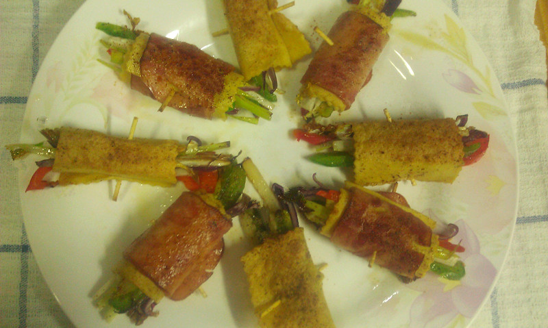 及以下步骤:火腿片、豆腐皮卷起来用牙签固定。 做好的火腿豆腐皮卷。 电饼铛预热抹薄油,放入火腿腐皮卷。 煎至两面金黄、菜料变软,撒入辣椒粉、胡椒粉、胡椒粉等适合自己口味的调味料。 成盘上桌,诱人呀 火腿片、豆腐皮卷起来用牙签固定。 做好的火腿豆腐皮卷。 电饼铛预热抹薄油,放入火腿腐皮卷。 煎至两面金黄、菜料变软,撒入辣椒粉、胡椒粉、胡椒粉等适合自己口味的调味料。 成盘上桌,诱人呀