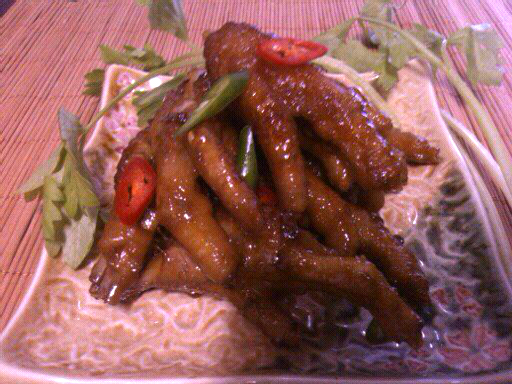 及以下步骤:锅置火上油烧至六成热,放入鸡爪炸制。(盖上盖子,防止油溅伤)炸至金黄色捞起沥油,放入凉水中浸泡1小时 姜、蒜、辣椒、料酒、蚝油、糖、生抽、老抽、白胡椒粉.调成味汁备用。 将味汁淋入盘中拌匀,为了赶时间我放入高压锅煮15分钟 取出后汤汁较多将鸡爪倒入锅中,用慢火收干汤汁即可 晚上用手机不大好照啊 成品 将味汁淋入盘中拌匀,为了赶时间我放入高压锅煮15分钟 取出后汤汁较多将鸡爪倒入锅中,用慢火收干汤汁即可 晚上用手机不大好照啊 成品