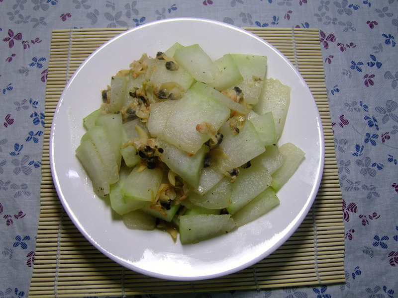 终于到了黄梅季,这几乎是一年最难熬的光景,连着几天的阵雨,尽赶着下班的点,空气中弥漫着潮湿和黏腻,出了空调房间衣服就贴在身上,人懒懒的提不起精神。看看地铁里的人,每一个都是无精打彩的,看样子被季节情绪化的不止我一个。很久没发菜谱,实在是因为不想动,每日三餐都是能糊弄就糊弄过去……直到今天发现指甲上出现了凹槽,典型的营养缺乏,日子尼玛的不能在这样下去了,只好又回到了第一线。懒人的悲催! 感叹完了,开始做菜,由于不能杀生,我选择了蛤蜊干,其实只要把沙子淘尽,味道不输鲜蛤蜊,泡蛤蜊的水留下煮汤非常鲜美,冬瓜清热消暑,是十分应景的蔬菜,配合着蛤蜊,既营养又美味。