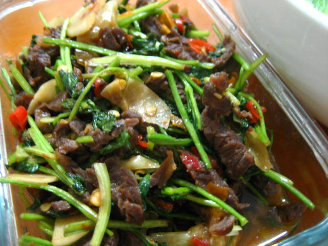牛肉并没有加生粉抓,一来是不喜欢,二来切牛肉时切断纹路后牛肉就很嫩了,我是土包子,荤腥的生食一口都吃不得,所以我家滴肉食都保持着宁可失去一些口感也得炒熟滴原则,那些神马寄生虫8是俺们这种一肚子油滴人们消受得起的哇。