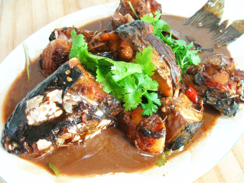 上周同事体检胆固醇高,无肉不欢的老公也开始了自己的健康计划——以后要多吃鱼,少吃肉。这条大草鱼是用老抽烧的,这也是我家第一次用老抽,以前都只是用普通的酱油,别说这老抽烧出来的鱼颜色还真是好看!