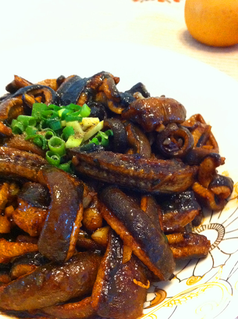 响油鳝糊,是一道上海菜,因为菜装盘后,最后要淋上热油,所以抬上桌那瞬间还会发出滋、滋的声音,还有这道菜还会勾芡,成菜中仅有的那么点点汤汁都包裹在鳝丝上,于是得名鳝糊。 鳝鱼,是我们家餐桌很少出现的食材,就是外出寻食也很少点,但我对鳝鱼有着一种难以形容的情怀,我一直记得小时候第一次吃鳝鱼,就爱上了它的美味,可那时候鳝鱼很少,几乎是端午那阵子才会有,即使有卖,我妈妈也不会买回来做,她怕它那血淋淋的模样,她也常常奇怪我怎么会喜欢吃鳝鱼。所以那时候的我总是盼望着过端午节,因为端午节那天,鳝鱼是我外婆家必做的一道菜,常常刚吃完,我就想着第二年的端午了、、、、、、 现在,经过人工养殖,鳝鱼不再仅仅只能在端午前后买到了,可现在的鳝鱼吃起来,似乎又少了些当年的味道。前两天在家附近菜场买菜,看见有鳝鱼卖,以前好像都没看到过,很高兴啊,一下子想到了自己小时候总盼望着吃鳝鱼,为了满足自己幼时的那点小期望,就买了几条做了这道响油鳝糊。