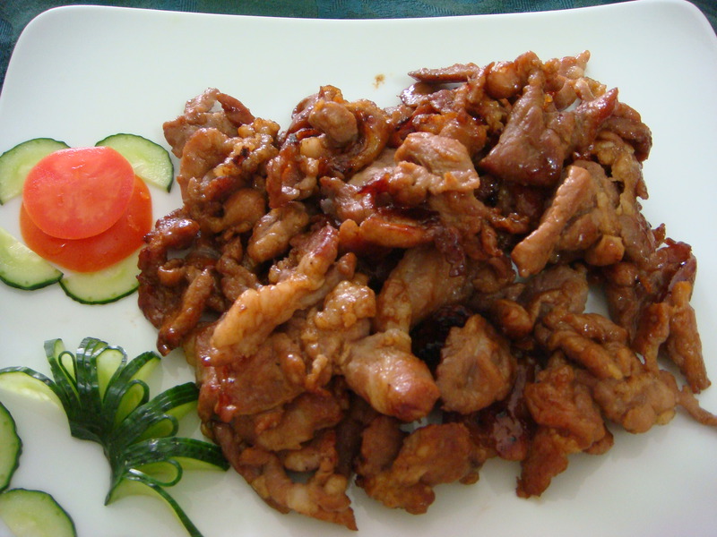夏天都喜欢在自家后院bbq,我喜欢用猪肉做烤肉串,每一次都事先将肉腌制好,第二天串成肉串然后用炭烤的方法将肉串烤熟。前天,是星期天,经过一个懒懒的午睡,起床正准备串肉串时,突然下起大雨。尽管最后雨停了,可地面是湿的,而且给人的感觉很闷热! 没有心情bbq,但这么一大盘的肉怎么办呢?聪明的我,很快就想到,用煎的方法是不是也能将肉片做得很美味!于是,决定不做烤肉串了,就将肉片煎熟!呵呵,想象到的美味和香中带有甘甜的爽脆口感真的让家人吃了赞不绝口! 今天将制作步骤和朋友们分享。希望你们喜欢。 这款荤菜特点:颜色金黄,五香爽口,滋味甘甜,营养丰富,制作简便,可以用作家庭宴客佳肴。 当然,平时自家做来吃更是百吃不腻的好菜!应家人的要求今天还要吃呢。
