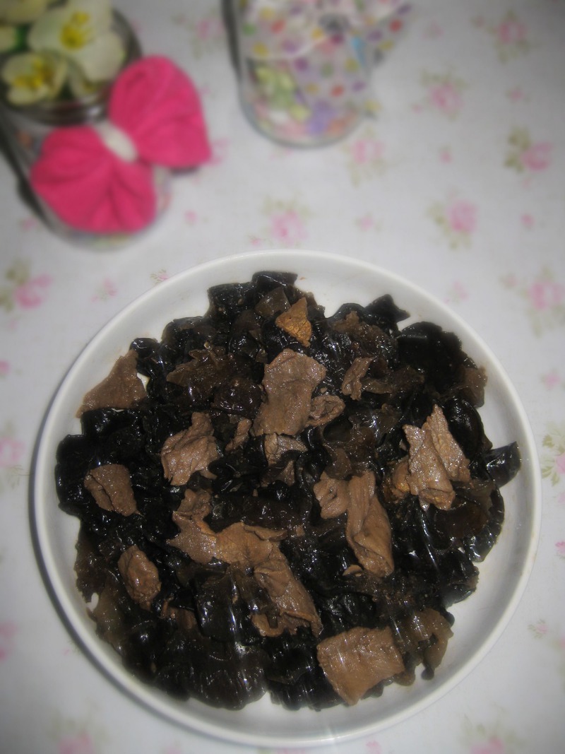 及以下步骤:木耳泡发好撕成小朵 牛肉切薄片,放入小半勺盐,小半勺酱油,小半勺料酒抓匀,腌10分钟 木耳泡发好撕成小朵 牛肉切薄片,放入小半勺盐,小半勺酱油,小半勺料酒抓匀,腌10分钟 木耳泡发好撕成小朵 牛肉切薄片,放入小半勺盐,小半勺酱油,小半勺料酒抓匀,腌10分钟 热锅入油,放入牛肉 翻炒至变色 在放入木耳,加半勺盐 翻炒翻炒,加半勺鸡精炒均匀即可