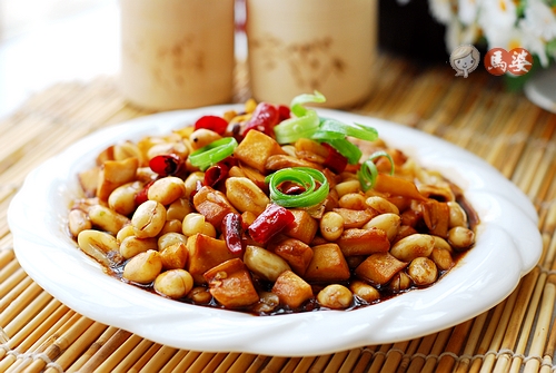 及以下步骤:放入辣椒和姜煸炒出香味。 放杏鲍菇略炒。 倒入芡汁大火烧5分钟。 倒入熟花生米,烧至汤汁剩三分之一即可出锅。 生抽、老抽、盐、糖和淀粉加适量水勾芡。 热锅放油烧8成热,放入花椒。 放入辣椒和姜煸炒出香味。 放杏鲍菇略炒。 倒入芡汁大火烧5分钟。 倒入熟花生米,烧至汤汁剩三分之一即可出锅。