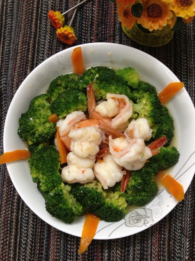 一连下了几天的雨,往菜市场一看,虾挺鲜。配上西兰花。有营养又鲜味十足。