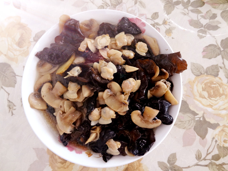 文蛤的鲜就不多说了,加上口蘑,真是鲜上加鲜,再加上木耳,唉,鲜的眉毛都掉了。
