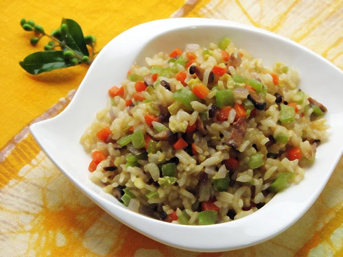 及以下步骤:将泡发好的香菇切碎粒,洋葱、胡萝卜、辣椒分别切成碎粒,鸡蛋打散。 炒锅烧热倒入橄榄油。 将泡发好的香菇切碎粒,洋葱、胡萝卜、辣椒分别切成碎粒,鸡蛋打散。 炒锅烧热倒入橄榄油。 将泡发好的香菇切碎粒,洋葱、胡萝卜、辣椒分别切成碎粒,鸡蛋打散。 炒锅烧热倒入橄榄油。 将香菇粒、洋葱粒、胡萝卜粒、辣椒粒倒入炒锅,炒出香味。 倒入蚝油并撒入少许胡椒粉。 将米饭倒入炒锅并将鸡蛋液均匀的倒在米饭上。 将米饭炒至米粒有光泽即可出锅。