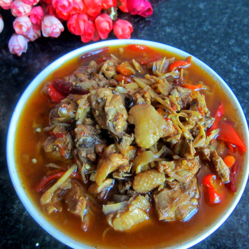 鸡肉的肉质细嫩,滋味鲜美,适合多种烹调方法,并富有营养,有滋补养身的作用。鸡肉适用于热炒、炖汤,红烧,凉拌多种吃法。今天咱就来盘-----啤酒鸡。 食材: 三黄鸡1只去头和四肢,姜丝,辣椒, 调料: 啤酒1瓶,盐,茶籽油,味精,生抽,料酒, 过程: 1、处理好的鸡切块,姜切丝, 2、锅里倒进茶子油烧开,倒进鸡块和一些辣椒翻炒, 3、加入料洒或白醋去醒, 4、调入生抽和精盐炒均匀, 5、炒干水分后,倒进啤酒一瓶。 6、放上姜丝和辣椒油中火煮熟收汁, 7、再调入味精提鲜即成。