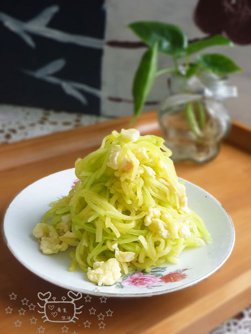及以下步骤:锅中留油,爆香蒜片儿。 下南瓜丝翻炒。 南瓜丝变软时倒入鸡蛋。 加盐和一点点糖。 加生抽。 出锅了。 南瓜丝变软时倒入鸡蛋。 加盐和一点点糖。 加生抽。 出锅了。