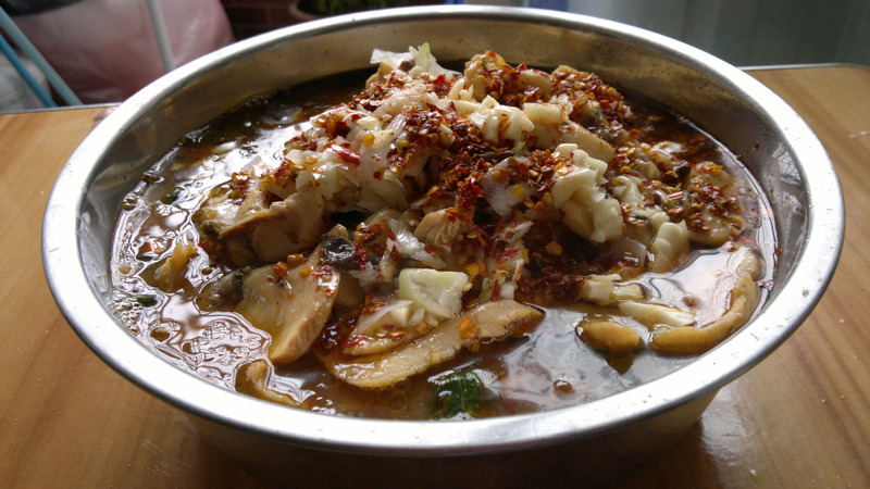 糖(适量) / 油(适量) / 鸡精(适量) / 大葱(一小段) / 花椒(30粒) / 干辣椒(适量) / 豆瓣酱(一勺) / 辣椒面(适量) / 酸菜(一包) / 蒜瓣(5瓣)