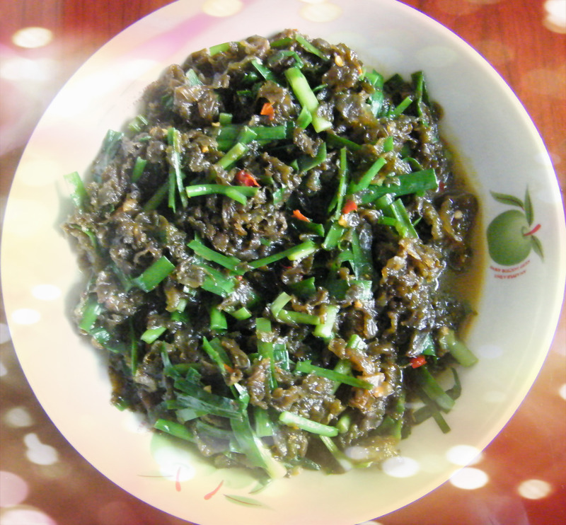 7、好了,一盆鲜美的韭菜炒地衣就完成了!