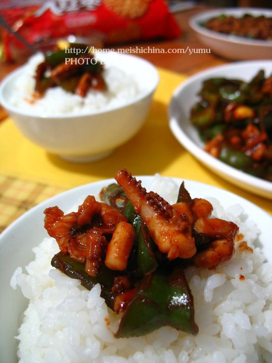 韩式辣炒鱿鱼足,超级下饭的哦!在我手里出品的这道菜有两特,一特是用的这个辣酱,是上次去丹东,在专门卖韩国食品的店里买的。味道真是不赖,热菜,凉菜放里一点,味道特正,后悔没多买几盒。二特呢,是我有点怕辣,就放一个大油椒,两个杭椒,如多放几个杭椒,会更辣的哦~不过就是这样,也把我辣的够戗。不过老公一点不感冒,还说不够辣~