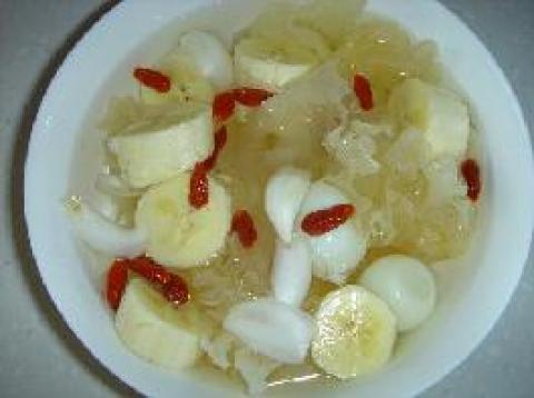 香蕉,百合,银耳,鹌鹑蛋,枸杞,冰糖