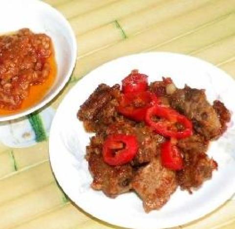 大番茄3粒,姜1小块,蒜头3瓣,小红葱2粒,花椒半茶匙,茄汁酱、辣椒酱、辣豆酱各1汤匙