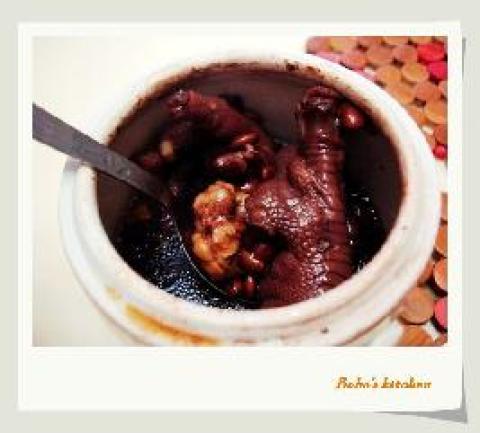 第二种:家常菜菜谱黑豆核桃炖鸡脚做法