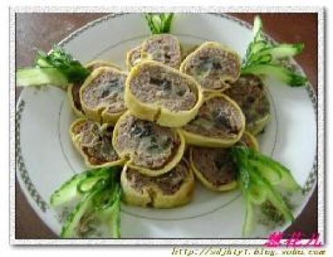 第一种:家常菜菜谱牛肉皮蛋卷做法