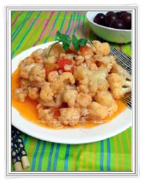 喜欢沙司的筒子也可加些。花菜不能炒得太久,太烂,否则会影响菜的防癌功能。西兰花也可同炒,一样好吃,漂亮。