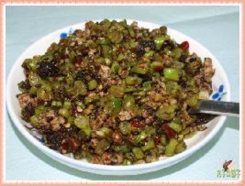 第三种:家常菜菜谱榄菜肉末四季豆做法