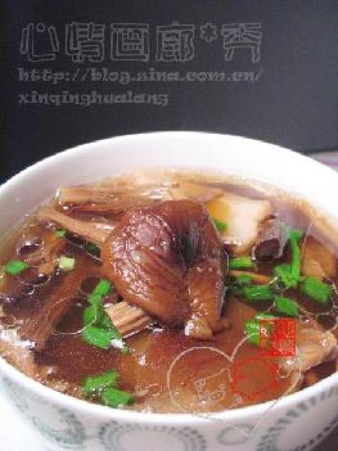 饿了要吃,没等电紫砂煲了~ 泡茶树菇的水留着一起炖,另外不要放鸡精了,本身就很鲜美~(嘿嘿~蛮节约滴~)