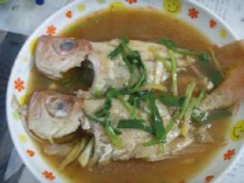 大眼鸡鱼2条,姜适量,葱适量,生抽适量,鸡精适量