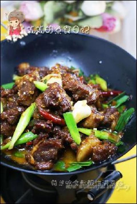 6.将炒好的羊肉移到铁锅中,即可上桌点小火煨着。慢享。
