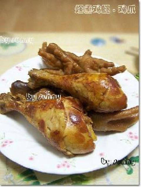 鸡腿,鸡爪,葱,姜,花椒,大料,料酒,生抽,盐,茶叶,白糖,面巾纸4张