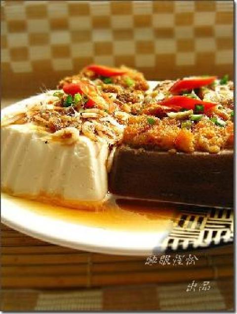 第三种:家常菜菜谱榄菜肉松蒸豆腐做法
