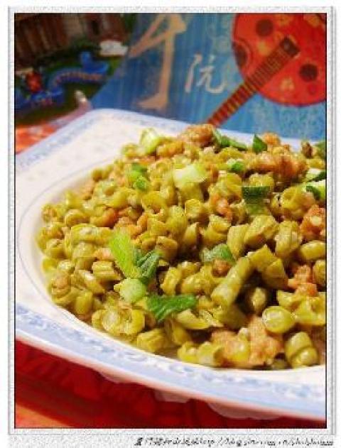 2.爆香蒜蓉末.剁椒.酸豆角,然后把调好味的猪肉末放下去炒...n分钟以后,一道酸辣好滋味的菜就完成咯...
