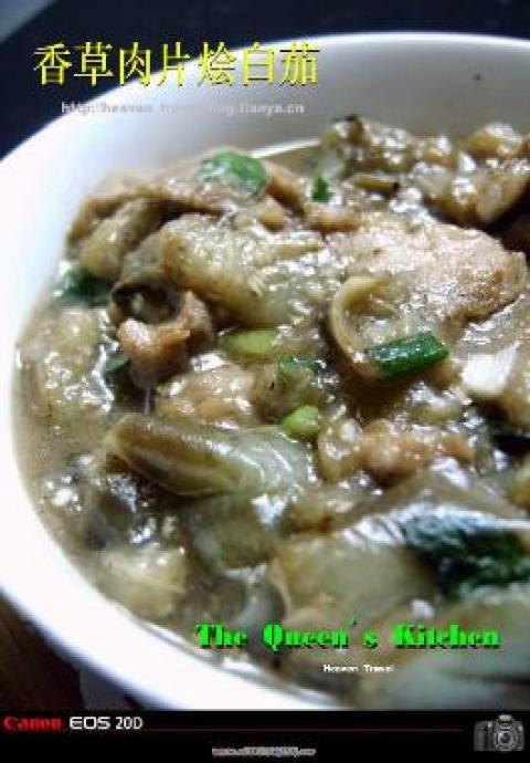 第二种:家常菜菜谱香草肉片烩白茄做法
