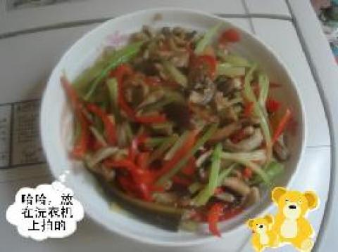 6.重新坐锅,下香茹丝,放入所有调料,锅离灶翻炒一分钟即可。