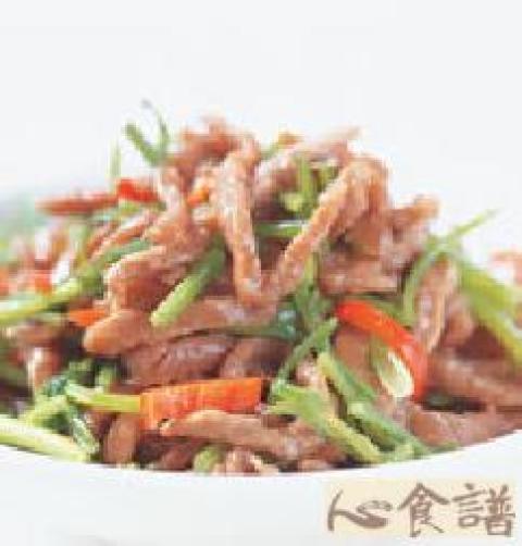 第五种:家常菜菜谱家常小炒香根牛柳丝做法