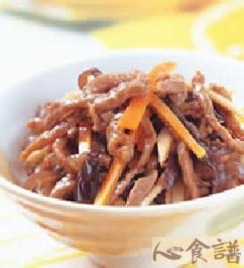牛肉丝300公克,荀丝60公克,木耳丝30公克,红萝卜丝30公克,芹菜30公克,香醋1大匙,酱油1茶匙,糖1/2茶匙,水20㏄,太白粉1/2茶匙