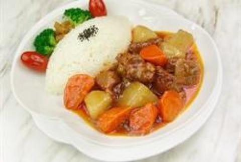 7、米饭装盘,淋上煮好的咖喱牛腩浇汁即可。