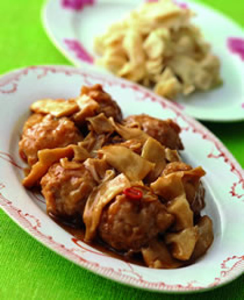 第一种:家常菜菜谱蚝油脆笋肉丸做法