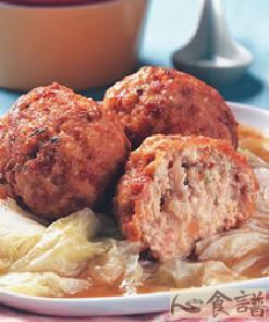 a.瘦肉末210公克,肥肉末90公克,板豆腐150公克,荸荠50公克,鸡蛋1个,葱末10公克,姜末10公克,b.大白菜400公克,葱2根,姜15公克,a.盐3公克,水50cc,鸡精粉4公克,细糖5公克,酱油10㏄,料酒10㏄,白胡椒粉1/2茶匙,香油1茶匙,b.水600㏄,酱油100㏄,细糖1茶匙