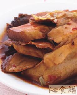 2.热油锅,先爆香青蒜苗片、蒜片、辣椒片及姜丝,再加入所有调味料煮至滚沸,再放入作法1的去皮五花肉片以小火煮至汤汁收干即可。