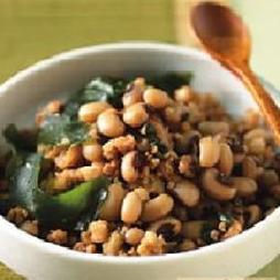 眉豆50公克,猪绞肉150公克,干海带芽2公克,蒜末5公克,橄榄油1大匙,水300㏄,淡酱油40公克,味醂30公克,米酒1小匙,盐少许